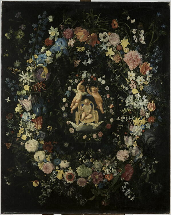 「英国ロイヤルコレクションのハンプトンコート宮殿に収蔵されているアンニーバレ・カラッチの絵画に若干の変更を加えて、1605年頃に描かれた複製」です。